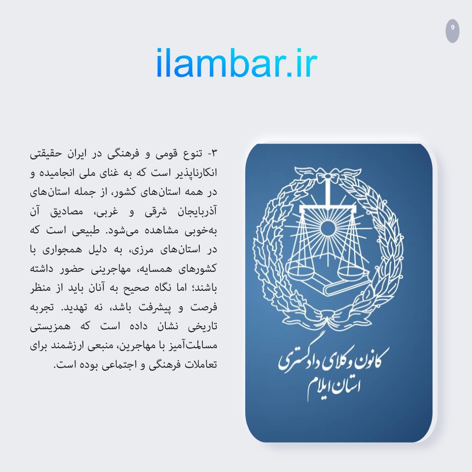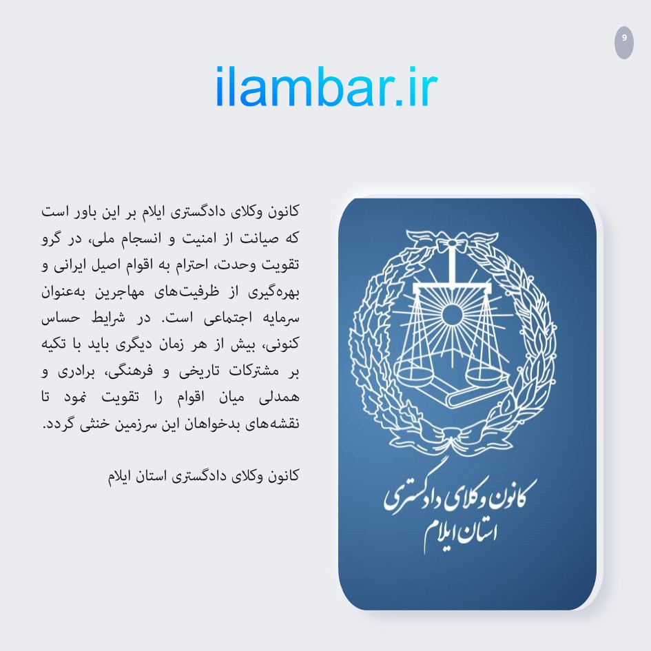 کانون وکلای دادگستری ایلام بر این باور است که صیانت از امنیت و انسجام ملی، در گرو تقویت وحدت، احترام به اقوام اصیل ایرانی و بهره‌گیری از ظرفیت‌های مهاجرین به‌عنوان سرمایه اجتماعی است. در شرایط حساس کنونی، بیش از هر زمان دیگری باید با تکیه بر مشترکات تاریخی و فرهنگی، برادری و همدلی میان اقوام را تقویت نمود تا نقشه‌های بدخواهان این سرزمین خنثی گردد.